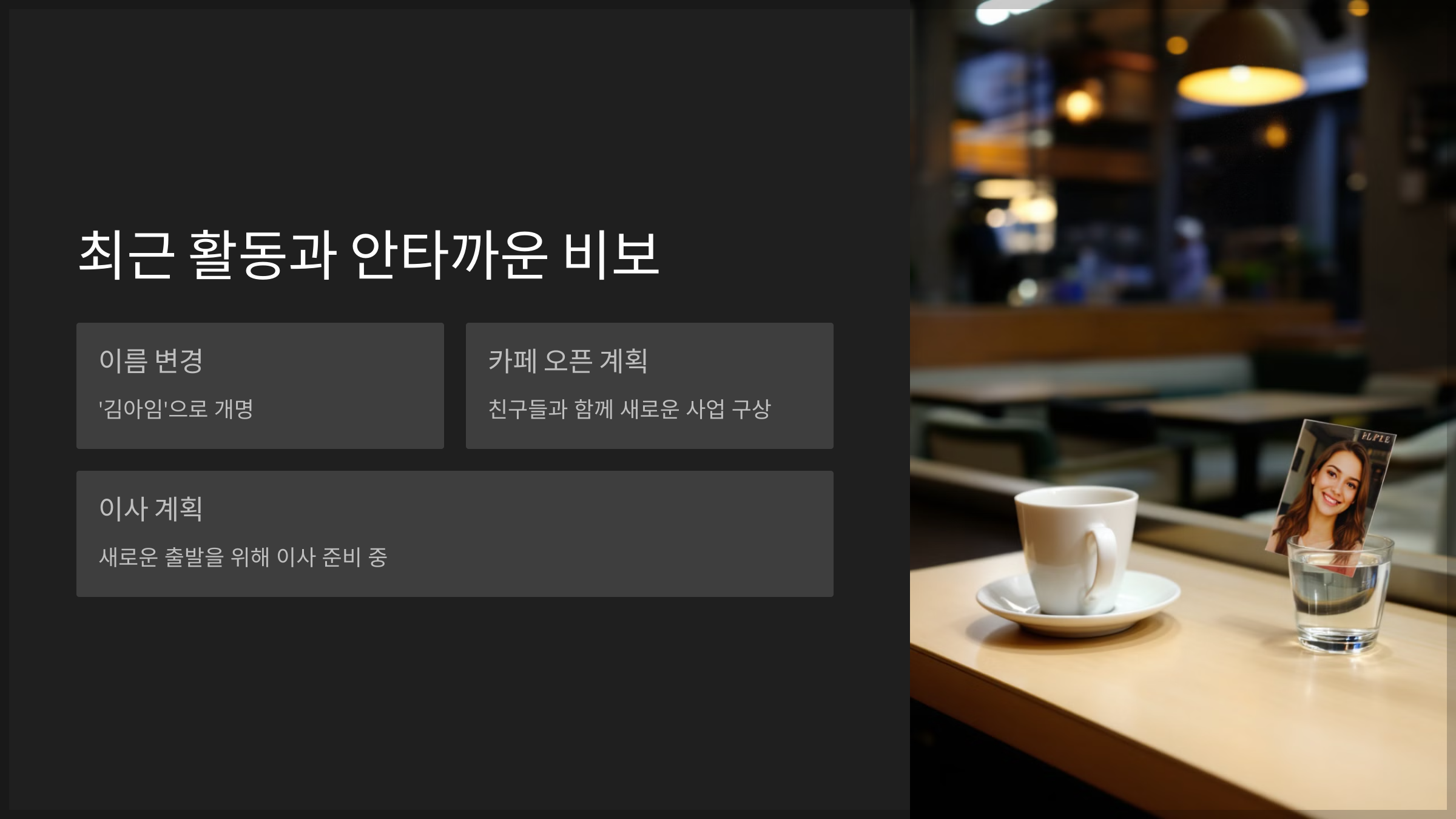 - 🔹 카페 오픈 계획: 친구들과 함께 새로운 사업 구상
